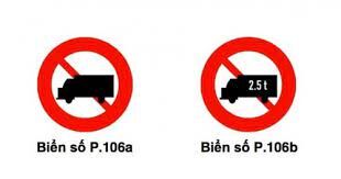 P.106a là biển cấm tất cả các loại xe có trọng tải trên 1,5 tấn và có hiệu lực với máy kéo đi kèm xe máy chuyên dùng. Trong đó, khối lượng chuyên chở được tính bằng tổng khối lượng hàng hóa lẫn người và đồ vật có trên xe, ngoại trừ khối lượng riêng của xe tải đó.