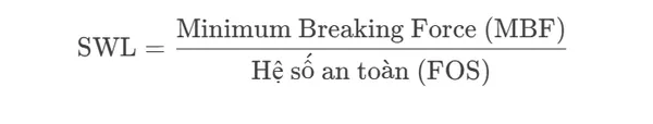 Hình 1: Công thức xác định tải trọng làm việc an toàn (SWL) dựa trên lực phá hủy và hệ số an toàn.