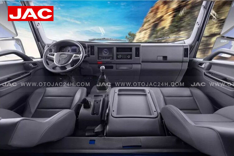 Xe tải vận chuyển hàng hóa khối lượng lớn có thể sẽ di chuyển đường dài, chính vì thế nội thất bên trong xe và cabin yêu cầu khá cao để tài xế có tinh thần thoải mái nhất trong khi di chuyển. Xe tải JAC N800 Plus được thiết kế các tính năng tiện nghi như Radio, máy lạnh, mồi thuốc, khóa cửa trung tâm….