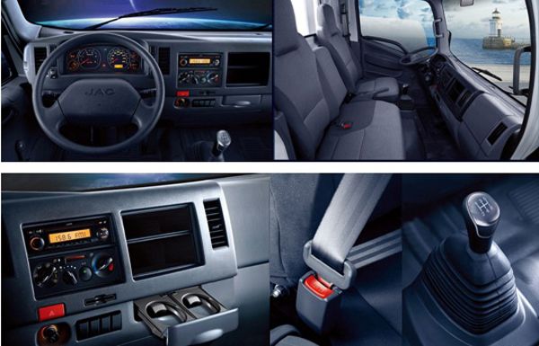 •  Bên trong cabin xe Jac 3T5 vô cùng rỗng rãi với 3 chỗ ngồi tạo cảm giác thoải mái nhất cho người ngồi, Ngoài ra xe còn được trang bị đầy đủ tiện nghi  như máy lạnh, hệ thống âm thanh, hộc chứa đồ, đèn chiếu sáng giúp lấy đồ vật vào ban đêm, mồi lửa….